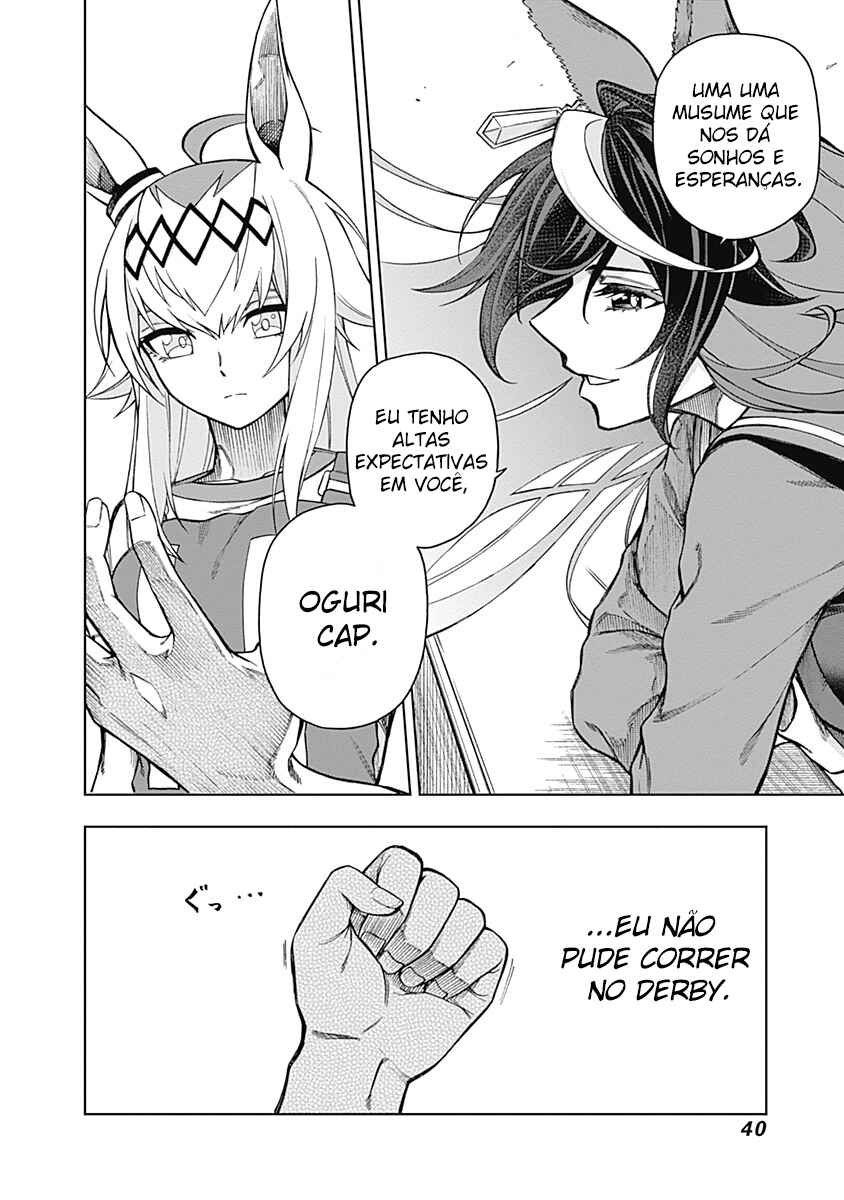 Capítulo 1 - V2 Bem aquiCapítulo 2 - Me arranje uma corridaCapítulo 3 - "Acho que posso confiar nele"Capítulo 4 - Eu vou ganhar da próxima vezCapítulo 5 - Um nível completamente diferenteCapítulo 6 - Vista do topoCapítulo 7 - Junior CrownCapítulo 7.5 - Volume 1 ExtrasCapítulo 8 - Além das expectativasCapítulo 9 - Duas vezesCapítulo 10 - O mais alto padrão na regiãoCapítulo 11 - LicençaCapítulo 12 - A melhor escolhaCapítulo 13 - "Então ganhe a corrida"Capítulo 14 - "O que você está fazendo?"Capítulo 15 - MonstroCapítulo 16 - "Obrigada Kasamatsu"Capítulo 16.5 - Volume 2 ExtrasCapítulo 17 - Academia TracenCapítulo 18 - Registro da classe clássicaCapítulo 19 - Primeira corridaCapítulo 20 - Tremendo de entusiasmoCapítulo 21 - IncomparávelCapítulo 22 - Mainichi HaiCapítulo 23 - "Uma Uma Musume qualquer iria..."Capítulo 24 - "Não há ideais sem sonhos"Capítulo 25 - DignidadeCapítulo 26 - Nippon DerbyCapítulo 26.5 - Volume 3 ExtrasCapítulo 27 - O cume mais altoCapítulo 28 - "Farei meu próprio caminho"Capítulo 29 - A mais forteCapítulo 30 - A melhor Uma Musume do JapãoCapítulo 31 - Férias de verãoCapítulo 32 - Mainichi OkanCapítulo 33 - "Onde ninguém pode te encostar"Capítulo 34 - A Estrela de KasamatsuCapítulo 35 - Uniforme de CorridaCapítulo 36 - "Hoje ela está diferente"Capítulo 36.5 - Volume 4 ExtrasCapítulo 37 - Tennou-Sho (Outono)Capítulo 38 - "Avançar com tudo!"Capítulo 39 - "Tudo para hoje"Capítulo 40 - "Pisadas de um Monstro"Capítulo 41 - Relâmpago BrancoCapítulo 42 - A ZonaCapítulo 43 - A melhor do JapãoCapítulo 44 - "Aquela que eu quero vencer"Capítulo 45 - MilagreCapítulo 46 - "Nossa história"Capítulo 47 - "Eu vou ficar mais forte"Capítulo 47.5 - Volume 5 ExtrasCapítulo 48 - Nível mundialCapítulo 49 - Minha inimigaCapítulo 50 - "Marcado na história"Capítulo 51 - Japan CupCapítulo 52 - Disputa por posiçõesCapítulo 53 - "GOGOGOGO!!"Capítulo 54 - PresençaCapítulo 55 - Wild JokerCapítulo 56 - Se você puderCapítulo 57 - Dangerous ZoneCapítulo 57.5 - Volume 6 ExtrasCapítulo 58 - "Para provar a mim mesma"Capítulo 59 - Até que bem parecidasCapítulo 60 - Não acabe sendo apenas uma derrotaCapítulo 61 - Domínio desconhecidoCapítulo 62 - Estudo de campoCapítulo 63 - Ainda não vou desistirCapítulo 64 - Conheço melhor do que ninguémCapítulo 65 - Neste "Domínio"Capítulo 66 - A RespostaCapítulo 67 - "Take it easy"Capítulo 67.5 - Volume 7 ExtrasCapítulo 68 - Arima KinenCapítulo 69 - Seja você mesmaCapítulo 70 - ChaticeCapítulo 71 - Contagem RegressivaCapítulo 72 - Chute de BalaCapítulo 73 - Fantasma CinzaCapítulo 74 - Venha correr comigoCapítulo 75 - Uma nova eraCapítulo 76 - Bem vinda de voltaCapítulo 76.5 - Volume 8 ExtrasCapítulo 77 - A Arma Suprema de OoiCapítulo 78 - Tokyo DaishotenCapítulo 79 - Nova eraCapítulo 80 - Grande preçoCapítulo 81 - HavaíCapítulo 82 - RecuperadaCapítulo 83 - "Você tirou as palavras da minha boca"Capítulo 84 - Família MejiroCapítulo 85 - Sendo perseguidaCapítulo 85.5 - Volume 9 ExtrasCapítulo 86 - A corrida nunca vai acabarCapítulo 87 - Hábitos