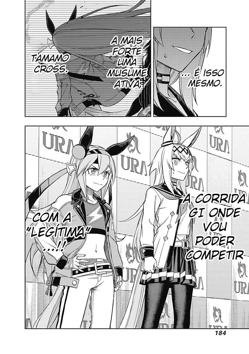 Capítulo 1 - V2 Bem aquiCapítulo 2 - Me arranje uma corridaCapítulo 3 - "Acho que posso confiar nele"Capítulo 4 - Eu vou ganhar da próxima vezCapítulo 5 - Um nível completamente diferenteCapítulo 6 - Vista do topoCapítulo 7 - Junior CrownCapítulo 7.5 - Volume 1 ExtrasCapítulo 8 - Além das expectativasCapítulo 9 - Duas vezesCapítulo 10 - O mais alto padrão na regiãoCapítulo 11 - LicençaCapítulo 12 - A melhor escolhaCapítulo 13 - "Então ganhe a corrida"Capítulo 14 - "O que você está fazendo?"Capítulo 15 - MonstroCapítulo 16 - "Obrigada Kasamatsu"Capítulo 16.5 - Volume 2 ExtrasCapítulo 17 - Academia TracenCapítulo 18 - Registro da classe clássicaCapítulo 19 - Primeira corridaCapítulo 20 - Tremendo de entusiasmoCapítulo 21 - IncomparávelCapítulo 22 - Mainichi HaiCapítulo 23 - "Uma Uma Musume qualquer iria..."Capítulo 24 - "Não há ideais sem sonhos"Capítulo 25 - DignidadeCapítulo 26 - Nippon DerbyCapítulo 26.5 - Volume 3 ExtrasCapítulo 27 - O cume mais altoCapítulo 28 - "Farei meu próprio caminho"Capítulo 29 - A mais forteCapítulo 30 - A melhor Uma Musume do JapãoCapítulo 31 - Férias de verãoCapítulo 32 - Mainichi OkanCapítulo 33 - "Onde ninguém pode te encostar"Capítulo 34 - A Estrela de KasamatsuCapítulo 35 - Uniforme de CorridaCapítulo 36 - "Hoje ela está diferente"Capítulo 36.5 - Volume 4 ExtrasCapítulo 37 - Tennou-Sho (Outono)Capítulo 38 - "Avançar com tudo!"Capítulo 39 - "Tudo para hoje"Capítulo 40 - "Pisadas de um Monstro"Capítulo 41 - Relâmpago BrancoCapítulo 42 - A ZonaCapítulo 43 - A melhor do JapãoCapítulo 44 - "Aquela que eu quero vencer"Capítulo 45 - MilagreCapítulo 46 - "Nossa história"Capítulo 47 - "Eu vou ficar mais forte"Capítulo 47.5 - Volume 5 ExtrasCapítulo 48 - Nível mundialCapítulo 49 - Minha inimigaCapítulo 50 - "Marcado na história"Capítulo 51 - Japan CupCapítulo 52 - Disputa por posiçõesCapítulo 53 - "GOGOGOGO!!"Capítulo 54 - PresençaCapítulo 55 - Wild JokerCapítulo 56 - Se você puderCapítulo 57 - Dangerous ZoneCapítulo 57.5 - Volume 6 ExtrasCapítulo 58 - "Para provar a mim mesma"Capítulo 59 - Até que bem parecidasCapítulo 60 - Não acabe sendo apenas uma derrotaCapítulo 61 - Domínio desconhecidoCapítulo 62 - Estudo de campoCapítulo 63 - Ainda não vou desistirCapítulo 64 - Conheço melhor do que ninguémCapítulo 65 - Neste "Domínio"Capítulo 66 - A RespostaCapítulo 67 - "Take it easy"Capítulo 67.5 - Volume 7 ExtrasCapítulo 68 - Arima KinenCapítulo 69 - Seja você mesmaCapítulo 70 - ChaticeCapítulo 71 - Contagem RegressivaCapítulo 72 - Chute de BalaCapítulo 73 - Fantasma CinzaCapítulo 74 - Venha correr comigoCapítulo 75 - Uma nova eraCapítulo 76 - Bem vinda de voltaCapítulo 76.5 - Volume 8 ExtrasCapítulo 77 - A Arma Suprema de OoiCapítulo 78 - Tokyo DaishotenCapítulo 79 - Nova eraCapítulo 80 - Grande preçoCapítulo 81 - HavaíCapítulo 82 - RecuperadaCapítulo 83 - "Você tirou as palavras da minha boca"Capítulo 84 - Família MejiroCapítulo 85 - Sendo perseguidaCapítulo 85.5 - Volume 9 ExtrasCapítulo 86 - A corrida nunca vai acabarCapítulo 87 - Hábitos