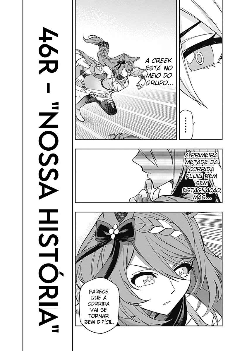 Capítulo 1 - V2 Bem aquiCapítulo 2 - Me arranje uma corridaCapítulo 3 - "Acho que posso confiar nele"Capítulo 4 - Eu vou ganhar da próxima vezCapítulo 5 - Um nível completamente diferenteCapítulo 6 - Vista do topoCapítulo 7 - Junior CrownCapítulo 7.5 - Volume 1 ExtrasCapítulo 8 - Além das expectativasCapítulo 9 - Duas vezesCapítulo 10 - O mais alto padrão na regiãoCapítulo 11 - LicençaCapítulo 12 - A melhor escolhaCapítulo 13 - "Então ganhe a corrida"Capítulo 14 - "O que você está fazendo?"Capítulo 15 - MonstroCapítulo 16 - "Obrigada Kasamatsu"Capítulo 16.5 - Volume 2 ExtrasCapítulo 17 - Academia TracenCapítulo 18 - Registro da classe clássicaCapítulo 19 - Primeira corridaCapítulo 20 - Tremendo de entusiasmoCapítulo 21 - IncomparávelCapítulo 22 - Mainichi HaiCapítulo 23 - "Uma Uma Musume qualquer iria..."Capítulo 24 - "Não há ideais sem sonhos"Capítulo 25 - DignidadeCapítulo 26 - Nippon DerbyCapítulo 26.5 - Volume 3 ExtrasCapítulo 27 - O cume mais altoCapítulo 28 - "Farei meu próprio caminho"Capítulo 29 - A mais forteCapítulo 30 - A melhor Uma Musume do JapãoCapítulo 31 - Férias de verãoCapítulo 32 - Mainichi OkanCapítulo 33 - "Onde ninguém pode te encostar"Capítulo 34 - A Estrela de KasamatsuCapítulo 35 - Uniforme de CorridaCapítulo 36 - "Hoje ela está diferente"Capítulo 36.5 - Volume 4 ExtrasCapítulo 37 - Tennou-Sho (Outono)Capítulo 38 - "Avançar com tudo!"Capítulo 39 - "Tudo para hoje"Capítulo 40 - "Pisadas de um Monstro"Capítulo 41 - Relâmpago BrancoCapítulo 42 - A ZonaCapítulo 43 - A melhor do JapãoCapítulo 44 - "Aquela que eu quero vencer"Capítulo 45 - MilagreCapítulo 46 - "Nossa história"Capítulo 47 - "Eu vou ficar mais forte"Capítulo 47.5 - Volume 5 ExtrasCapítulo 48 - Nível mundialCapítulo 49 - Minha inimigaCapítulo 50 - "Marcado na história"Capítulo 51 - Japan CupCapítulo 52 - Disputa por posiçõesCapítulo 53 - "GOGOGOGO!!"Capítulo 54 - PresençaCapítulo 55 - Wild JokerCapítulo 56 - Se você puderCapítulo 57 - Dangerous ZoneCapítulo 57.5 - Volume 6 ExtrasCapítulo 58 - "Para provar a mim mesma"Capítulo 59 - Até que bem parecidasCapítulo 60 - Não acabe sendo apenas uma derrotaCapítulo 61 - Domínio desconhecidoCapítulo 62 - Estudo de campoCapítulo 63 - Ainda não vou desistirCapítulo 64 - Conheço melhor do que ninguémCapítulo 65 - Neste "Domínio"Capítulo 66 - A RespostaCapítulo 67 - "Take it easy"Capítulo 67.5 - Volume 7 ExtrasCapítulo 68 - Arima KinenCapítulo 69 - Seja você mesmaCapítulo 70 - ChaticeCapítulo 71 - Contagem RegressivaCapítulo 72 - Chute de BalaCapítulo 73 - Fantasma CinzaCapítulo 74 - Venha correr comigoCapítulo 75 - Uma nova eraCapítulo 76 - Bem vinda de voltaCapítulo 76.5 - Volume 8 ExtrasCapítulo 77 - A Arma Suprema de OoiCapítulo 78 - Tokyo DaishotenCapítulo 79 - Nova eraCapítulo 80 - Grande preçoCapítulo 81 - HavaíCapítulo 82 - RecuperadaCapítulo 83 - "Você tirou as palavras da minha boca"Capítulo 84 - Família MejiroCapítulo 85 - Sendo perseguidaCapítulo 85.5 - Volume 9 ExtrasCapítulo 86 - A corrida nunca vai acabarCapítulo 87 - Hábitos