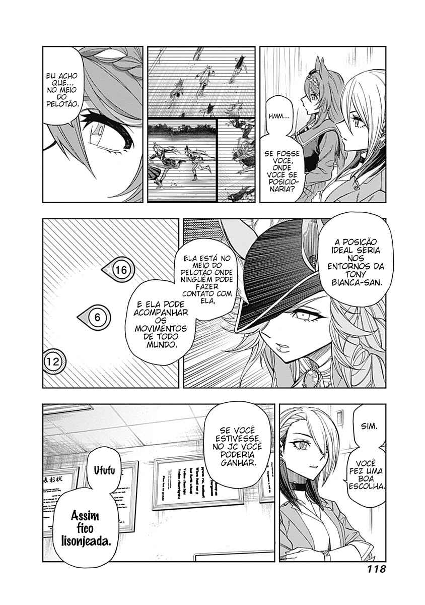 Capítulo 1 - V2 Bem aquiCapítulo 2 - Me arranje uma corridaCapítulo 3 - "Acho que posso confiar nele"Capítulo 4 - Eu vou ganhar da próxima vezCapítulo 5 - Um nível completamente diferenteCapítulo 6 - Vista do topoCapítulo 7 - Junior CrownCapítulo 7.5 - Volume 1 ExtrasCapítulo 8 - Além das expectativasCapítulo 9 - Duas vezesCapítulo 10 - O mais alto padrão na regiãoCapítulo 11 - LicençaCapítulo 12 - A melhor escolhaCapítulo 13 - "Então ganhe a corrida"Capítulo 14 - "O que você está fazendo?"Capítulo 15 - MonstroCapítulo 16 - "Obrigada Kasamatsu"Capítulo 16.5 - Volume 2 ExtrasCapítulo 17 - Academia TracenCapítulo 18 - Registro da classe clássicaCapítulo 19 - Primeira corridaCapítulo 20 - Tremendo de entusiasmoCapítulo 21 - IncomparávelCapítulo 22 - Mainichi HaiCapítulo 23 - "Uma Uma Musume qualquer iria..."Capítulo 24 - "Não há ideais sem sonhos"Capítulo 25 - DignidadeCapítulo 26 - Nippon DerbyCapítulo 26.5 - Volume 3 ExtrasCapítulo 27 - O cume mais altoCapítulo 28 - "Farei meu próprio caminho"Capítulo 29 - A mais forteCapítulo 30 - A melhor Uma Musume do JapãoCapítulo 31 - Férias de verãoCapítulo 32 - Mainichi OkanCapítulo 33 - "Onde ninguém pode te encostar"Capítulo 34 - A Estrela de KasamatsuCapítulo 35 - Uniforme de CorridaCapítulo 36 - "Hoje ela está diferente"Capítulo 36.5 - Volume 4 ExtrasCapítulo 37 - Tennou-Sho (Outono)Capítulo 38 - "Avançar com tudo!"Capítulo 39 - "Tudo para hoje"Capítulo 40 - "Pisadas de um Monstro"Capítulo 41 - Relâmpago BrancoCapítulo 42 - A ZonaCapítulo 43 - A melhor do JapãoCapítulo 44 - "Aquela que eu quero vencer"Capítulo 45 - MilagreCapítulo 46 - "Nossa história"Capítulo 47 - "Eu vou ficar mais forte"Capítulo 47.5 - Volume 5 ExtrasCapítulo 48 - Nível mundialCapítulo 49 - Minha inimigaCapítulo 50 - "Marcado na história"Capítulo 51 - Japan CupCapítulo 52 - Disputa por posiçõesCapítulo 53 - "GOGOGOGO!!"Capítulo 54 - PresençaCapítulo 55 - Wild JokerCapítulo 56 - Se você puderCapítulo 57 - Dangerous ZoneCapítulo 57.5 - Volume 6 ExtrasCapítulo 58 - "Para provar a mim mesma"Capítulo 59 - Até que bem parecidasCapítulo 60 - Não acabe sendo apenas uma derrotaCapítulo 61 - Domínio desconhecidoCapítulo 62 - Estudo de campoCapítulo 63 - Ainda não vou desistirCapítulo 64 - Conheço melhor do que ninguémCapítulo 65 - Neste "Domínio"Capítulo 66 - A RespostaCapítulo 67 - "Take it easy"Capítulo 67.5 - Volume 7 ExtrasCapítulo 68 - Arima KinenCapítulo 69 - Seja você mesmaCapítulo 70 - ChaticeCapítulo 71 - Contagem RegressivaCapítulo 72 - Chute de BalaCapítulo 73 - Fantasma CinzaCapítulo 74 - Venha correr comigoCapítulo 75 - Uma nova eraCapítulo 76 - Bem vinda de voltaCapítulo 76.5 - Volume 8 ExtrasCapítulo 77 - A Arma Suprema de OoiCapítulo 78 - Tokyo DaishotenCapítulo 79 - Nova eraCapítulo 80 - Grande preçoCapítulo 81 - HavaíCapítulo 82 - RecuperadaCapítulo 83 - "Você tirou as palavras da minha boca"Capítulo 84 - Família MejiroCapítulo 85 - Sendo perseguidaCapítulo 85.5 - Volume 9 ExtrasCapítulo 86 - A corrida nunca vai acabarCapítulo 87 - Hábitos