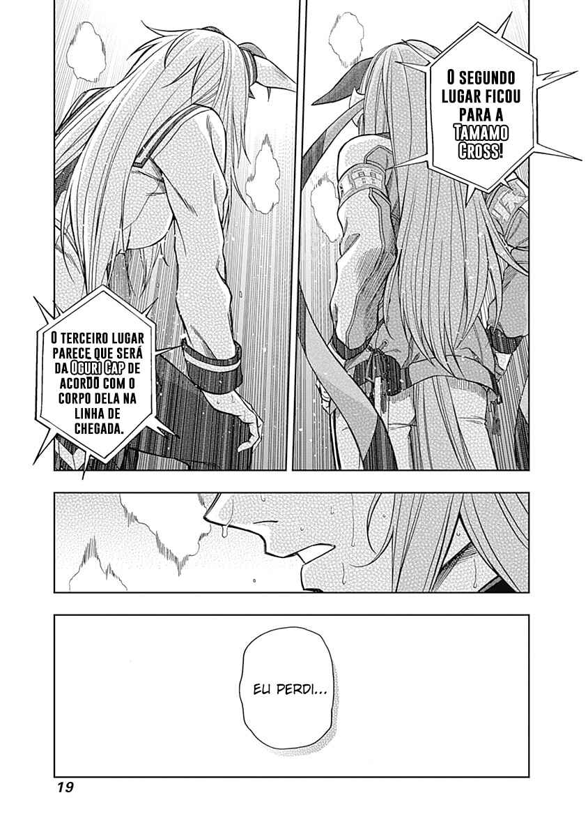 Capítulo 1 - V2 Bem aquiCapítulo 2 - Me arranje uma corridaCapítulo 3 - "Acho que posso confiar nele"Capítulo 4 - Eu vou ganhar da próxima vezCapítulo 5 - Um nível completamente diferenteCapítulo 6 - Vista do topoCapítulo 7 - Junior CrownCapítulo 7.5 - Volume 1 ExtrasCapítulo 8 - Além das expectativasCapítulo 9 - Duas vezesCapítulo 10 - O mais alto padrão na regiãoCapítulo 11 - LicençaCapítulo 12 - A melhor escolhaCapítulo 13 - "Então ganhe a corrida"Capítulo 14 - "O que você está fazendo?"Capítulo 15 - MonstroCapítulo 16 - "Obrigada Kasamatsu"Capítulo 16.5 - Volume 2 ExtrasCapítulo 17 - Academia TracenCapítulo 18 - Registro da classe clássicaCapítulo 19 - Primeira corridaCapítulo 20 - Tremendo de entusiasmoCapítulo 21 - IncomparávelCapítulo 22 - Mainichi HaiCapítulo 23 - "Uma Uma Musume qualquer iria..."Capítulo 24 - "Não há ideais sem sonhos"Capítulo 25 - DignidadeCapítulo 26 - Nippon DerbyCapítulo 26.5 - Volume 3 ExtrasCapítulo 27 - O cume mais altoCapítulo 28 - "Farei meu próprio caminho"Capítulo 29 - A mais forteCapítulo 30 - A melhor Uma Musume do JapãoCapítulo 31 - Férias de verãoCapítulo 32 - Mainichi OkanCapítulo 33 - "Onde ninguém pode te encostar"Capítulo 34 - A Estrela de KasamatsuCapítulo 35 - Uniforme de CorridaCapítulo 36 - "Hoje ela está diferente"Capítulo 36.5 - Volume 4 ExtrasCapítulo 37 - Tennou-Sho (Outono)Capítulo 38 - "Avançar com tudo!"Capítulo 39 - "Tudo para hoje"Capítulo 40 - "Pisadas de um Monstro"Capítulo 41 - Relâmpago BrancoCapítulo 42 - A ZonaCapítulo 43 - A melhor do JapãoCapítulo 44 - "Aquela que eu quero vencer"Capítulo 45 - MilagreCapítulo 46 - "Nossa história"Capítulo 47 - "Eu vou ficar mais forte"Capítulo 47.5 - Volume 5 ExtrasCapítulo 48 - Nível mundialCapítulo 49 - Minha inimigaCapítulo 50 - "Marcado na história"Capítulo 51 - Japan CupCapítulo 52 - Disputa por posiçõesCapítulo 53 - "GOGOGOGO!!"Capítulo 54 - PresençaCapítulo 55 - Wild JokerCapítulo 56 - Se você puderCapítulo 57 - Dangerous ZoneCapítulo 57.5 - Volume 6 ExtrasCapítulo 58 - "Para provar a mim mesma"Capítulo 59 - Até que bem parecidasCapítulo 60 - Não acabe sendo apenas uma derrotaCapítulo 61 - Domínio desconhecidoCapítulo 62 - Estudo de campoCapítulo 63 - Ainda não vou desistirCapítulo 64 - Conheço melhor do que ninguémCapítulo 65 - Neste "Domínio"Capítulo 66 - A RespostaCapítulo 67 - "Take it easy"Capítulo 67.5 - Volume 7 ExtrasCapítulo 68 - Arima KinenCapítulo 69 - Seja você mesmaCapítulo 70 - ChaticeCapítulo 71 - Contagem RegressivaCapítulo 72 - Chute de BalaCapítulo 73 - Fantasma CinzaCapítulo 74 - Venha correr comigoCapítulo 75 - Uma nova eraCapítulo 76 - Bem vinda de voltaCapítulo 76.5 - Volume 8 ExtrasCapítulo 77 - A Arma Suprema de OoiCapítulo 78 - Tokyo DaishotenCapítulo 79 - Nova eraCapítulo 80 - Grande preçoCapítulo 81 - HavaíCapítulo 82 - RecuperadaCapítulo 83 - "Você tirou as palavras da minha boca"Capítulo 84 - Família MejiroCapítulo 85 - Sendo perseguidaCapítulo 85.5 - Volume 9 ExtrasCapítulo 86 - A corrida nunca vai acabarCapítulo 87 - Hábitos