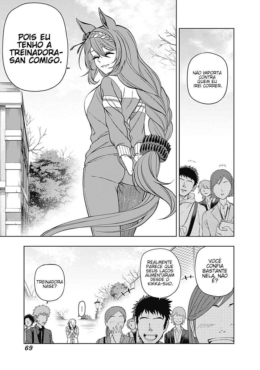 Capítulo 1 - V2 Bem aquiCapítulo 2 - Me arranje uma corridaCapítulo 3 - "Acho que posso confiar nele"Capítulo 4 - Eu vou ganhar da próxima vezCapítulo 5 - Um nível completamente diferenteCapítulo 6 - Vista do topoCapítulo 7 - Junior CrownCapítulo 7.5 - Volume 1 ExtrasCapítulo 8 - Além das expectativasCapítulo 9 - Duas vezesCapítulo 10 - O mais alto padrão na regiãoCapítulo 11 - LicençaCapítulo 12 - A melhor escolhaCapítulo 13 - "Então ganhe a corrida"Capítulo 14 - "O que você está fazendo?"Capítulo 15 - MonstroCapítulo 16 - "Obrigada Kasamatsu"Capítulo 16.5 - Volume 2 ExtrasCapítulo 17 - Academia TracenCapítulo 18 - Registro da classe clássicaCapítulo 19 - Primeira corridaCapítulo 20 - Tremendo de entusiasmoCapítulo 21 - IncomparávelCapítulo 22 - Mainichi HaiCapítulo 23 - "Uma Uma Musume qualquer iria..."Capítulo 24 - "Não há ideais sem sonhos"Capítulo 25 - DignidadeCapítulo 26 - Nippon DerbyCapítulo 26.5 - Volume 3 ExtrasCapítulo 27 - O cume mais altoCapítulo 28 - "Farei meu próprio caminho"Capítulo 29 - A mais forteCapítulo 30 - A melhor Uma Musume do JapãoCapítulo 31 - Férias de verãoCapítulo 32 - Mainichi OkanCapítulo 33 - "Onde ninguém pode te encostar"Capítulo 34 - A Estrela de KasamatsuCapítulo 35 - Uniforme de CorridaCapítulo 36 - "Hoje ela está diferente"Capítulo 36.5 - Volume 4 ExtrasCapítulo 37 - Tennou-Sho (Outono)Capítulo 38 - "Avançar com tudo!"Capítulo 39 - "Tudo para hoje"Capítulo 40 - "Pisadas de um Monstro"Capítulo 41 - Relâmpago BrancoCapítulo 42 - A ZonaCapítulo 43 - A melhor do JapãoCapítulo 44 - "Aquela que eu quero vencer"Capítulo 45 - MilagreCapítulo 46 - "Nossa história"Capítulo 47 - "Eu vou ficar mais forte"Capítulo 47.5 - Volume 5 ExtrasCapítulo 48 - Nível mundialCapítulo 49 - Minha inimigaCapítulo 50 - "Marcado na história"Capítulo 51 - Japan CupCapítulo 52 - Disputa por posiçõesCapítulo 53 - "GOGOGOGO!!"Capítulo 54 - PresençaCapítulo 55 - Wild JokerCapítulo 56 - Se você puderCapítulo 57 - Dangerous ZoneCapítulo 57.5 - Volume 6 ExtrasCapítulo 58 - "Para provar a mim mesma"Capítulo 59 - Até que bem parecidasCapítulo 60 - Não acabe sendo apenas uma derrotaCapítulo 61 - Domínio desconhecidoCapítulo 62 - Estudo de campoCapítulo 63 - Ainda não vou desistirCapítulo 64 - Conheço melhor do que ninguémCapítulo 65 - Neste "Domínio"Capítulo 66 - A RespostaCapítulo 67 - "Take it easy"Capítulo 67.5 - Volume 7 ExtrasCapítulo 68 - Arima KinenCapítulo 69 - Seja você mesmaCapítulo 70 - ChaticeCapítulo 71 - Contagem RegressivaCapítulo 72 - Chute de BalaCapítulo 73 - Fantasma CinzaCapítulo 74 - Venha correr comigoCapítulo 75 - Uma nova eraCapítulo 76 - Bem vinda de voltaCapítulo 76.5 - Volume 8 ExtrasCapítulo 77 - A Arma Suprema de OoiCapítulo 78 - Tokyo DaishotenCapítulo 79 - Nova eraCapítulo 80 - Grande preçoCapítulo 81 - HavaíCapítulo 82 - RecuperadaCapítulo 83 - "Você tirou as palavras da minha boca"Capítulo 84 - Família MejiroCapítulo 85 - Sendo perseguidaCapítulo 85.5 - Volume 9 ExtrasCapítulo 86 - A corrida nunca vai acabarCapítulo 87 - Hábitos