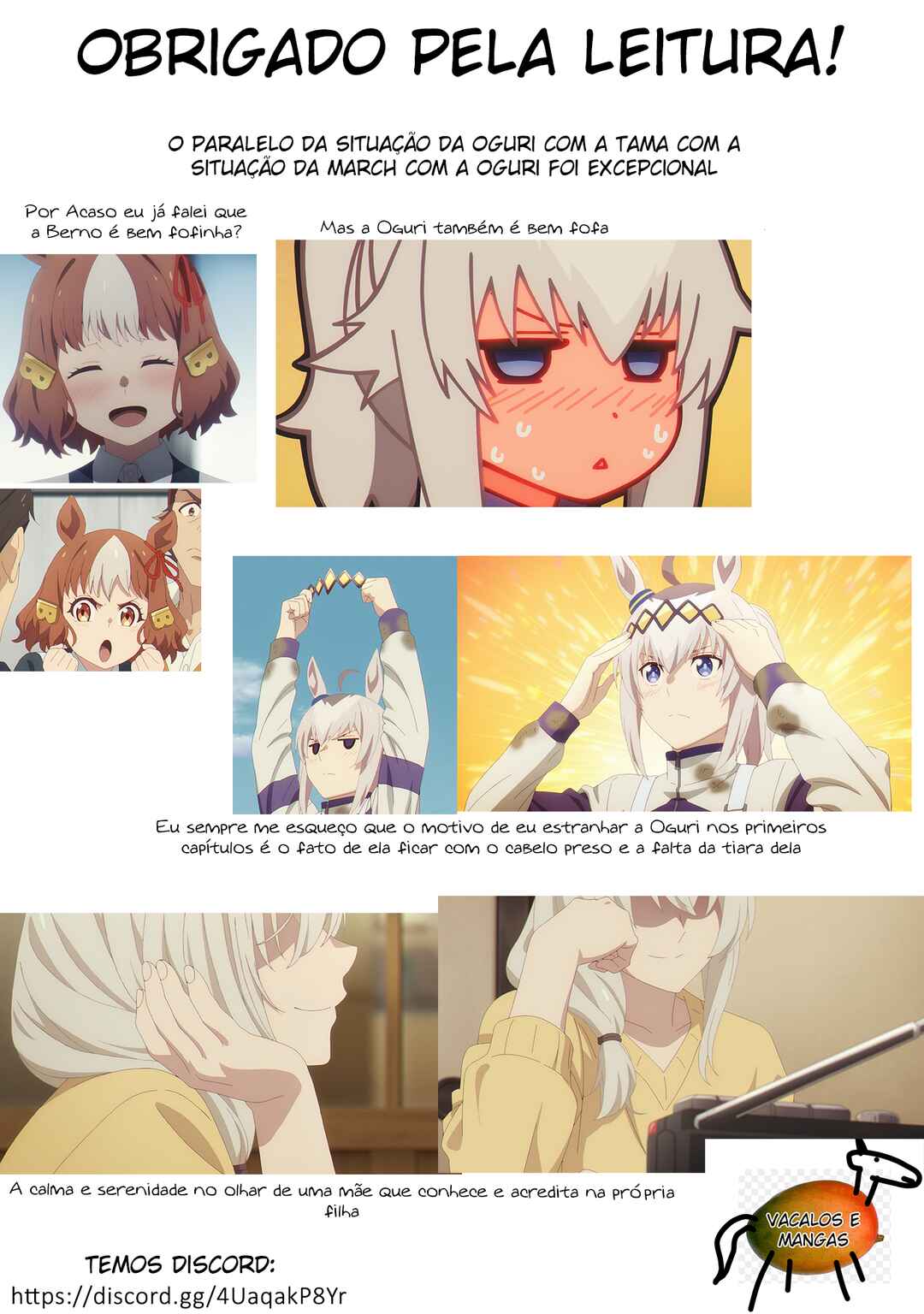 Capítulo 1 - V2 Bem aquiCapítulo 2 - Me arranje uma corridaCapítulo 3 - "Acho que posso confiar nele"Capítulo 4 - Eu vou ganhar da próxima vezCapítulo 5 - Um nível completamente diferenteCapítulo 6 - Vista do topoCapítulo 7 - Junior CrownCapítulo 7.5 - Volume 1 ExtrasCapítulo 8 - Além das expectativasCapítulo 9 - Duas vezesCapítulo 10 - O mais alto padrão na regiãoCapítulo 11 - LicençaCapítulo 12 - A melhor escolhaCapítulo 13 - "Então ganhe a corrida"Capítulo 14 - "O que você está fazendo?"Capítulo 15 - MonstroCapítulo 16 - "Obrigada Kasamatsu"Capítulo 16.5 - Volume 2 ExtrasCapítulo 17 - Academia TracenCapítulo 18 - Registro da classe clássicaCapítulo 19 - Primeira corridaCapítulo 20 - Tremendo de entusiasmoCapítulo 21 - IncomparávelCapítulo 22 - Mainichi HaiCapítulo 23 - "Uma Uma Musume qualquer iria..."Capítulo 24 - "Não há ideais sem sonhos"Capítulo 25 - DignidadeCapítulo 26 - Nippon DerbyCapítulo 26.5 - Volume 3 ExtrasCapítulo 27 - O cume mais altoCapítulo 28 - "Farei meu próprio caminho"Capítulo 29 - A mais forteCapítulo 30 - A melhor Uma Musume do JapãoCapítulo 31 - Férias de verãoCapítulo 32 - Mainichi OkanCapítulo 33 - "Onde ninguém pode te encostar"Capítulo 34 - A Estrela de KasamatsuCapítulo 35 - Uniforme de CorridaCapítulo 36 - "Hoje ela está diferente"Capítulo 36.5 - Volume 4 ExtrasCapítulo 37 - Tennou-Sho (Outono)Capítulo 38 - "Avançar com tudo!"Capítulo 39 - "Tudo para hoje"Capítulo 40 - "Pisadas de um Monstro"Capítulo 41 - Relâmpago BrancoCapítulo 42 - A ZonaCapítulo 43 - A melhor do JapãoCapítulo 44 - "Aquela que eu quero vencer"Capítulo 45 - MilagreCapítulo 46 - "Nossa história"Capítulo 47 - "Eu vou ficar mais forte"Capítulo 47.5 - Volume 5 ExtrasCapítulo 48 - Nível mundialCapítulo 49 - Minha inimigaCapítulo 50 - "Marcado na história"Capítulo 51 - Japan CupCapítulo 52 - Disputa por posiçõesCapítulo 53 - "GOGOGOGO!!"Capítulo 54 - PresençaCapítulo 55 - Wild JokerCapítulo 56 - Se você puderCapítulo 57 - Dangerous ZoneCapítulo 57.5 - Volume 6 ExtrasCapítulo 58 - "Para provar a mim mesma"Capítulo 59 - Até que bem parecidasCapítulo 60 - Não acabe sendo apenas uma derrotaCapítulo 61 - Domínio desconhecidoCapítulo 62 - Estudo de campoCapítulo 63 - Ainda não vou desistirCapítulo 64 - Conheço melhor do que ninguémCapítulo 65 - Neste "Domínio"Capítulo 66 - A RespostaCapítulo 67 - "Take it easy"Capítulo 67.5 - Volume 7 ExtrasCapítulo 68 - Arima KinenCapítulo 69 - Seja você mesmaCapítulo 70 - ChaticeCapítulo 71 - Contagem RegressivaCapítulo 72 - Chute de BalaCapítulo 73 - Fantasma CinzaCapítulo 74 - Venha correr comigoCapítulo 75 - Uma nova eraCapítulo 76 - Bem vinda de voltaCapítulo 76.5 - Volume 8 ExtrasCapítulo 77 - A Arma Suprema de OoiCapítulo 78 - Tokyo DaishotenCapítulo 79 - Nova eraCapítulo 80 - Grande preçoCapítulo 81 - HavaíCapítulo 82 - RecuperadaCapítulo 83 - "Você tirou as palavras da minha boca"Capítulo 84 - Família MejiroCapítulo 85 - Sendo perseguidaCapítulo 85.5 - Volume 9 ExtrasCapítulo 86 - A corrida nunca vai acabarCapítulo 87 - Hábitos