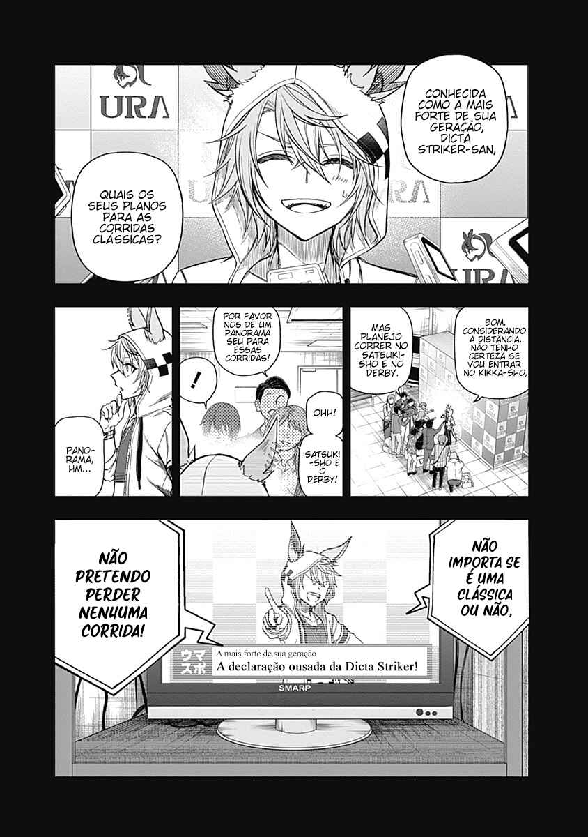 Capítulo 1 - V2 Bem aquiCapítulo 2 - Me arranje uma corridaCapítulo 3 - "Acho que posso confiar nele"Capítulo 4 - Eu vou ganhar da próxima vezCapítulo 5 - Um nível completamente diferenteCapítulo 6 - Vista do topoCapítulo 7 - Junior CrownCapítulo 7.5 - Volume 1 ExtrasCapítulo 8 - Além das expectativasCapítulo 9 - Duas vezesCapítulo 10 - O mais alto padrão na regiãoCapítulo 11 - LicençaCapítulo 12 - A melhor escolhaCapítulo 13 - "Então ganhe a corrida"Capítulo 14 - "O que você está fazendo?"Capítulo 15 - MonstroCapítulo 16 - "Obrigada Kasamatsu"Capítulo 16.5 - Volume 2 ExtrasCapítulo 17 - Academia TracenCapítulo 18 - Registro da classe clássicaCapítulo 19 - Primeira corridaCapítulo 20 - Tremendo de entusiasmoCapítulo 21 - IncomparávelCapítulo 22 - Mainichi HaiCapítulo 23 - "Uma Uma Musume qualquer iria..."Capítulo 24 - "Não há ideais sem sonhos"Capítulo 25 - DignidadeCapítulo 26 - Nippon DerbyCapítulo 26.5 - Volume 3 ExtrasCapítulo 27 - O cume mais altoCapítulo 28 - "Farei meu próprio caminho"Capítulo 29 - A mais forteCapítulo 30 - A melhor Uma Musume do JapãoCapítulo 31 - Férias de verãoCapítulo 32 - Mainichi OkanCapítulo 33 - "Onde ninguém pode te encostar"Capítulo 34 - A Estrela de KasamatsuCapítulo 35 - Uniforme de CorridaCapítulo 36 - "Hoje ela está diferente"Capítulo 36.5 - Volume 4 ExtrasCapítulo 37 - Tennou-Sho (Outono)Capítulo 38 - "Avançar com tudo!"Capítulo 39 - "Tudo para hoje"Capítulo 40 - "Pisadas de um Monstro"Capítulo 41 - Relâmpago BrancoCapítulo 42 - A ZonaCapítulo 43 - A melhor do JapãoCapítulo 44 - "Aquela que eu quero vencer"Capítulo 45 - MilagreCapítulo 46 - "Nossa história"Capítulo 47 - "Eu vou ficar mais forte"Capítulo 47.5 - Volume 5 ExtrasCapítulo 48 - Nível mundialCapítulo 49 - Minha inimigaCapítulo 50 - "Marcado na história"Capítulo 51 - Japan CupCapítulo 52 - Disputa por posiçõesCapítulo 53 - "GOGOGOGO!!"Capítulo 54 - PresençaCapítulo 55 - Wild JokerCapítulo 56 - Se você puderCapítulo 57 - Dangerous ZoneCapítulo 57.5 - Volume 6 ExtrasCapítulo 58 - "Para provar a mim mesma"Capítulo 59 - Até que bem parecidasCapítulo 60 - Não acabe sendo apenas uma derrotaCapítulo 61 - Domínio desconhecidoCapítulo 62 - Estudo de campoCapítulo 63 - Ainda não vou desistirCapítulo 64 - Conheço melhor do que ninguémCapítulo 65 - Neste "Domínio"Capítulo 66 - A RespostaCapítulo 67 - "Take it easy"Capítulo 67.5 - Volume 7 ExtrasCapítulo 68 - Arima KinenCapítulo 69 - Seja você mesmaCapítulo 70 - ChaticeCapítulo 71 - Contagem RegressivaCapítulo 72 - Chute de BalaCapítulo 73 - Fantasma CinzaCapítulo 74 - Venha correr comigoCapítulo 75 - Uma nova eraCapítulo 76 - Bem vinda de voltaCapítulo 76.5 - Volume 8 ExtrasCapítulo 77 - A Arma Suprema de OoiCapítulo 78 - Tokyo DaishotenCapítulo 79 - Nova eraCapítulo 80 - Grande preçoCapítulo 81 - HavaíCapítulo 82 - RecuperadaCapítulo 83 - "Você tirou as palavras da minha boca"Capítulo 84 - Família MejiroCapítulo 85 - Sendo perseguidaCapítulo 85.5 - Volume 9 ExtrasCapítulo 86 - A corrida nunca vai acabarCapítulo 87 - Hábitos