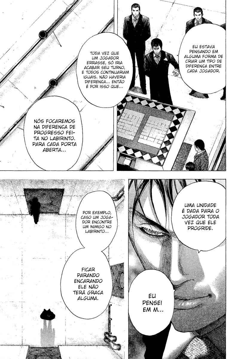 Capítulo 1 - JogadorCapítulo 1 - ApostasCapítulo 2 - Comendo agiotasCapítulo 3 - Armadilha de dados pessoaisCapítulo 3 - A Armadilha de Informações Pessoais Capítulo 4 - Assuntos SecretosCapítulo 5 - O valor das coisasCapítulo 5 - O valor das coisasCapítulo 6 - O jogo do edifício abandonadoCapítulo 6 - A Partida no Prédio AbandonadoCapítulo 7 - Tudo é uma apostaCapítulo 7 - Tudo é uma apostaCapítulo 8 - A Mente em ColapsoCapítulo 8 - Os espíritos se quebramCapítulo 9 - O Prazer de MatarCapítulo 10 - Uma festa de gritosCapítulo 11 - Um homem chamado UsoguiCapítulo 12 - DespertarCapítulo 13 - O terror da máscaraCapítulo 14 - Passando pelo prédioCapítulo 15 - Plano BCapítulo 16 - Implorando para viverCapítulo 17 - Limpe seu sangueCapítulo 18 - O golpe finalCapítulo 19 - Agarrando a vidaCapítulo 20 - Pega-pega no infernoCapítulo 21 - Quem sou eu?Capítulo 22 - Redenção!Capítulo 23 - Recuperando a força para um novo ataqueCapítulo 24 - Se preocupando com o dinheiroCapítulo 25 - Afiando as presasCapítulo 26 - Eu aposto!Capítulo 27 - Valores humanosCapítulo 28 - Conselho de uma mente exemplarCapítulo 29 - DevoreCapítulo 30 - Controle o dinheiro!Capítulo 31 - A fortuna é imprevisível e variávelCapítulo 32 - O prodígio KakerouCapítulo 33 - Intenção assassina brutalCapítulo 34 - O demônio enfurecido voltou!Capítulo 35 - O revolucionário apareceCapítulo 36 - Intuição femininaCapítulo 37 - A preciosa vida é...Capítulo 38 - O escolhidoCapítulo 39 - Algo está errado...Capítulo 40 - Proprietários do homemCapítulo 41 - HangmanCapítulo 42 - LeoCapítulo 43 - Primeiro jogoCapítulo 44 - Cinco de onzeCapítulo 45 - Batalha 50/50Capítulo 46 - A luta contra o tempoCapítulo 47 - EnfurecidoCapítulo 48 - Mate muitos para salvar poucos!Capítulo 49 - Em direção à vidaCapítulo 50 - Engrenagem corroídaCapítulo 51 - O brinquedo que está prestes a quebrarCapítulo 52 - O grande mentirosoCapítulo 53 - A festa continuaCapítulo 54 - Sorriso do deus da morteCapítulo 55 - O destino de um AlienCapítulo 56 - Zero, novamenteCapítulo 57 - O jeito do mundoCapítulo 58 - Leitura erradaCapítulo 59 - O derrotadoCapítulo 60 - Leão VS. LeãoCapítulo 61 - Sentimentos parentaisCapítulo 62 - Sensação da primeira vezCapítulo 63 - Destino do nadaCapítulo 64 - A verdade por detrás da revoluçãoCapítulo 65 - EnlouquecendoCapítulo 66 - SacrificandoCapítulo 67 - A chegada da sorteCapítulo 68 - Ambição secretaCapítulo 69 - Veja as condições para compensarCapítulo 70 - Pais e filhosCapítulo 71 - Meu valorCapítulo 72 - Verdadeira forçaCapítulo 73 - MensageiroCapítulo 74 - IdealCapítulo 75 - Termos do assassinoCapítulo 76 - O piedosoCapítulo 77 - Die YobboCapítulo 78 - Grupo ambiciosoCapítulo 79 - AlvoCapítulo 80 - Rumores EstranhosCapítulo 81 - Limite FatídicoCapítulo 82 - A estrada do desnorteamentoCapítulo 83 - DespertaresCapítulo 84 - Advento do rei demônioCapítulo 85 - Chances infinitasCapítulo 86 - Dentro de um sonhoCapítulo 87 - Cachorro confusoCapítulo 88 - A Composição do MundoCapítulo 89 - Entre no labirinto Capítulo 90 - O Nome da CompanhiaCapítulo 91 - O Melhor Lugar da CasaCapítulo 92 - Possessão DivinaCapítulo 93 - LembrarCapítulo 94 - O Terceiro HomemCapítulo 95 - AvisoCapítulo 96 - Aquilo que está perdidoCapítulo 97 - Uma Decisão é TomadaCapítulo 98 - A Ordem da FormigaCapítulo 99 - Contrato Para VidaCapítulo 100 - Um Grande ErroCapítulo 101 - Uma Ordem a Ser MantidaCapítulo 102 - O Ceifador DesceuCapítulo 103 - O Labirinto CorruptoCapítulo 104 - Propósito na VidaCapítulo 105 - FracassadoCapítulo 106 - O Demônio do Edifício Abandonado, De NovoCapítulo 107 - Algo que é ÓbvioCapítulo 108 - ChoqueCapítulo 109 - A Verdade do RumorCapítulo 110 - Festa das FerasCapítulo 111 - Battle RoyaleCapítulo 112 - Briga!!Capítulo 113 - Pandemõnio EternoCapítulo 114 - Próximo NívelCapítulo 115 - Arquivo-LCapítulo 116 - Seleção NaturalCapítulo 117 - A Vitória é InevitávelCapítulo 118 - O Melhor LabirintoCapítulo 119 - Monstro: MinotauroCapítulo 120 - Sondando um ao OutroCapítulo 121 - O Que Vem A SeguirCapítulo 122 - Uma Atmosfera InquietaCapítulo 123 - Uma Existência SelvagemCapítulo 124 - Entrando no Tempo M!Capítulo 125 - Uma Luta PuraCapítulo 126 - Pensamentos IntrincadosCapítulo 127 - Super-HumanoCapítulo 128 - Troca Pela VidaCapítulo 129 - Demônio vs Super HumanoCapítulo 130 - BlackCapítulo 131 - EngrenagemCapítulo 132 - ArmadilhaCapítulo 133 - Um Fracasso GravadoCapítulo 134 - Várias HistóriasCapítulo 135 - Encontrando o DesconhecidoCapítulo 136 - Características de Uma EliteCapítulo 137 - A Profundidade da PrevisãoCapítulo 138 - A Coisa EmprestadaCapítulo 139 - Cores MistasCapítulo 140 - O País Não Vai DesistirCapítulo 141 - O Homem Que Abandonou Seu OrgulhoCapítulo 142 - Coisas Perdidas Para a EscuridãoCapítulo 142.5 - Um Apostador Peculiar, UsokuiCapítulo 143 - MinotauroCapítulo 144 - Dois MonstrosCapítulo 145 - Extermine o MonstroCapítulo 146 - ComandoCapítulo 147 - Bem-vindo ao larCapítulo 148 - Ambos os homens se enfrentamCapítulo 149 - Uma Vingança Bem PlanejadaCapítulo 150 - A Qualificação da LutaCapítulo 151 - Aí vem o Nº 20!!