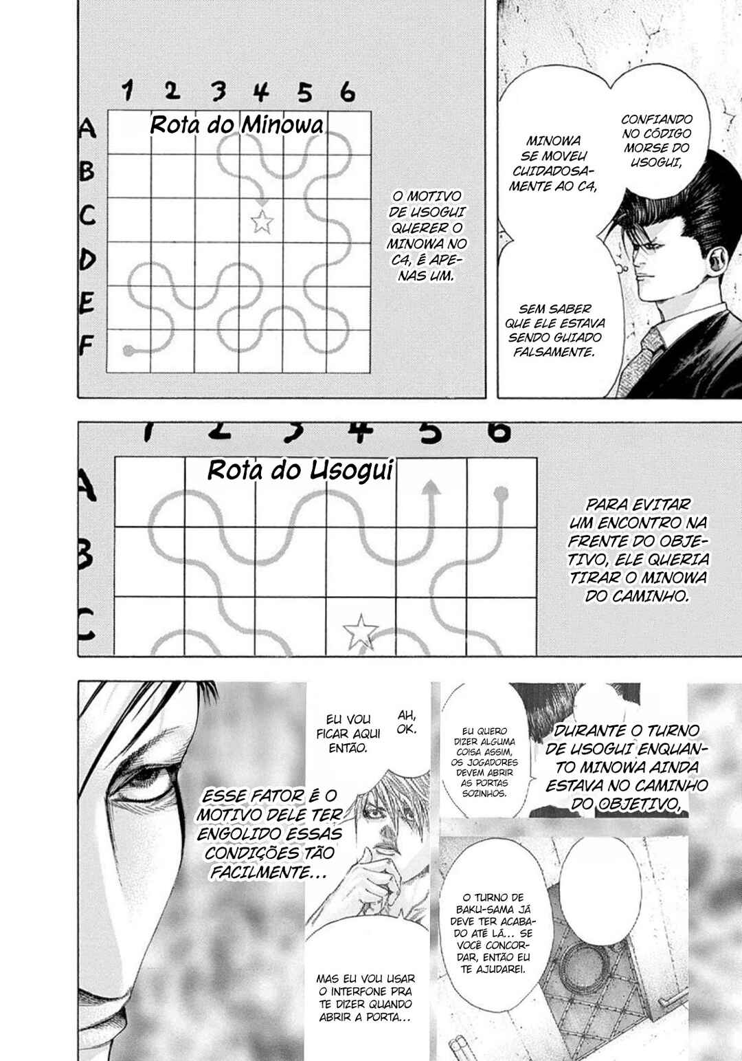 Capítulo 1 - JogadorCapítulo 1 - ApostasCapítulo 2 - Comendo agiotasCapítulo 3 - Armadilha de dados pessoaisCapítulo 3 - A Armadilha de Informações Pessoais Capítulo 4 - Assuntos SecretosCapítulo 5 - O valor das coisasCapítulo 5 - O valor das coisasCapítulo 6 - O jogo do edifício abandonadoCapítulo 6 - A Partida no Prédio AbandonadoCapítulo 7 - Tudo é uma apostaCapítulo 7 - Tudo é uma apostaCapítulo 8 - A Mente em ColapsoCapítulo 8 - Os espíritos se quebramCapítulo 9 - O Prazer de MatarCapítulo 10 - Uma festa de gritosCapítulo 11 - Um homem chamado UsoguiCapítulo 12 - DespertarCapítulo 13 - O terror da máscaraCapítulo 14 - Passando pelo prédioCapítulo 15 - Plano BCapítulo 16 - Implorando para viverCapítulo 17 - Limpe seu sangueCapítulo 18 - O golpe finalCapítulo 19 - Agarrando a vidaCapítulo 20 - Pega-pega no infernoCapítulo 21 - Quem sou eu?Capítulo 22 - Redenção!Capítulo 23 - Recuperando a força para um novo ataqueCapítulo 24 - Se preocupando com o dinheiroCapítulo 25 - Afiando as presasCapítulo 26 - Eu aposto!Capítulo 27 - Valores humanosCapítulo 28 - Conselho de uma mente exemplarCapítulo 29 - DevoreCapítulo 30 - Controle o dinheiro!Capítulo 31 - A fortuna é imprevisível e variávelCapítulo 32 - O prodígio KakerouCapítulo 33 - Intenção assassina brutalCapítulo 34 - O demônio enfurecido voltou!Capítulo 35 - O revolucionário apareceCapítulo 36 - Intuição femininaCapítulo 37 - A preciosa vida é...Capítulo 38 - O escolhidoCapítulo 39 - Algo está errado...Capítulo 40 - Proprietários do homemCapítulo 41 - HangmanCapítulo 42 - LeoCapítulo 43 - Primeiro jogoCapítulo 44 - Cinco de onzeCapítulo 45 - Batalha 50/50Capítulo 46 - A luta contra o tempoCapítulo 47 - EnfurecidoCapítulo 48 - Mate muitos para salvar poucos!Capítulo 49 - Em direção à vidaCapítulo 50 - Engrenagem corroídaCapítulo 51 - O brinquedo que está prestes a quebrarCapítulo 52 - O grande mentirosoCapítulo 53 - A festa continuaCapítulo 54 - Sorriso do deus da morteCapítulo 55 - O destino de um AlienCapítulo 56 - Zero, novamenteCapítulo 57 - O jeito do mundoCapítulo 58 - Leitura erradaCapítulo 59 - O derrotadoCapítulo 60 - Leão VS. LeãoCapítulo 61 - Sentimentos parentaisCapítulo 62 - Sensação da primeira vezCapítulo 63 - Destino do nadaCapítulo 64 - A verdade por detrás da revoluçãoCapítulo 65 - EnlouquecendoCapítulo 66 - SacrificandoCapítulo 67 - A chegada da sorteCapítulo 68 - Ambição secretaCapítulo 69 - Veja as condições para compensarCapítulo 70 - Pais e filhosCapítulo 71 - Meu valorCapítulo 72 - Verdadeira forçaCapítulo 73 - MensageiroCapítulo 74 - IdealCapítulo 75 - Termos do assassinoCapítulo 76 - O piedosoCapítulo 77 - Die YobboCapítulo 78 - Grupo ambiciosoCapítulo 79 - AlvoCapítulo 80 - Rumores EstranhosCapítulo 81 - Limite FatídicoCapítulo 82 - A estrada do desnorteamentoCapítulo 83 - DespertaresCapítulo 84 - Advento do rei demônioCapítulo 85 - Chances infinitasCapítulo 86 - Dentro de um sonhoCapítulo 87 - Cachorro confusoCapítulo 88 - A Composição do MundoCapítulo 89 - Entre no labirinto Capítulo 90 - O Nome da CompanhiaCapítulo 91 - O Melhor Lugar da CasaCapítulo 92 - Possessão DivinaCapítulo 93 - LembrarCapítulo 94 - O Terceiro HomemCapítulo 95 - AvisoCapítulo 96 - Aquilo que está perdidoCapítulo 97 - Uma Decisão é TomadaCapítulo 98 - A Ordem da FormigaCapítulo 99 - Contrato Para VidaCapítulo 100 - Um Grande ErroCapítulo 101 - Uma Ordem a Ser MantidaCapítulo 102 - O Ceifador DesceuCapítulo 103 - O Labirinto CorruptoCapítulo 104 - Propósito na VidaCapítulo 105 - FracassadoCapítulo 106 - O Demônio do Edifício Abandonado, De NovoCapítulo 107 - Algo que é ÓbvioCapítulo 108 - ChoqueCapítulo 109 - A Verdade do RumorCapítulo 110 - Festa das FerasCapítulo 111 - Battle RoyaleCapítulo 112 - Briga!!Capítulo 113 - Pandemõnio EternoCapítulo 114 - Próximo NívelCapítulo 115 - Arquivo-LCapítulo 116 - Seleção NaturalCapítulo 117 - A Vitória é InevitávelCapítulo 118 - O Melhor LabirintoCapítulo 119 - Monstro: MinotauroCapítulo 120 - Sondando um ao OutroCapítulo 121 - O Que Vem A SeguirCapítulo 122 - Uma Atmosfera InquietaCapítulo 123 - Uma Existência SelvagemCapítulo 124 - Entrando no Tempo M!Capítulo 125 - Uma Luta PuraCapítulo 126 - Pensamentos IntrincadosCapítulo 127 - Super-HumanoCapítulo 128 - Troca Pela VidaCapítulo 129 - Demônio vs Super HumanoCapítulo 130 - BlackCapítulo 131 - EngrenagemCapítulo 132 - ArmadilhaCapítulo 133 - Um Fracasso GravadoCapítulo 134 - Várias HistóriasCapítulo 135 - Encontrando o DesconhecidoCapítulo 136 - Características de Uma EliteCapítulo 137 - A Profundidade da PrevisãoCapítulo 138 - A Coisa EmprestadaCapítulo 139 - Cores MistasCapítulo 140 - O País Não Vai DesistirCapítulo 141 - O Homem Que Abandonou Seu OrgulhoCapítulo 142 - Coisas Perdidas Para a EscuridãoCapítulo 142.5 - Um Apostador Peculiar, UsokuiCapítulo 143 - MinotauroCapítulo 144 - Dois MonstrosCapítulo 145 - Extermine o MonstroCapítulo 146 - ComandoCapítulo 147 - Bem-vindo ao larCapítulo 148 - Ambos os homens se enfrentamCapítulo 149 - Uma Vingança Bem PlanejadaCapítulo 150 - A Qualificação da LutaCapítulo 151 - Aí vem o Nº 20!!