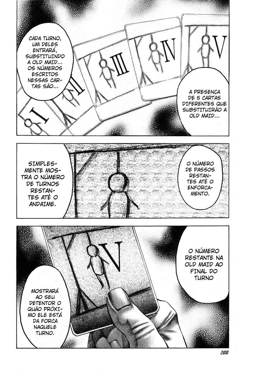 Capítulo 1 - JogadorCapítulo 1 - ApostasCapítulo 2 - Comendo agiotasCapítulo 3 - Armadilha de dados pessoaisCapítulo 3 - A Armadilha de Informações Pessoais Capítulo 4 - Assuntos SecretosCapítulo 5 - O valor das coisasCapítulo 5 - O valor das coisasCapítulo 6 - O jogo do edifício abandonadoCapítulo 6 - A Partida no Prédio AbandonadoCapítulo 7 - Tudo é uma apostaCapítulo 7 - Tudo é uma apostaCapítulo 8 - A Mente em ColapsoCapítulo 8 - Os espíritos se quebramCapítulo 9 - O Prazer de MatarCapítulo 10 - Uma festa de gritosCapítulo 11 - Um homem chamado UsoguiCapítulo 12 - DespertarCapítulo 13 - O terror da máscaraCapítulo 14 - Passando pelo prédioCapítulo 15 - Plano BCapítulo 16 - Implorando para viverCapítulo 17 - Limpe seu sangueCapítulo 18 - O golpe finalCapítulo 19 - Agarrando a vidaCapítulo 20 - Pega-pega no infernoCapítulo 21 - Quem sou eu?Capítulo 22 - Redenção!Capítulo 23 - Recuperando a força para um novo ataqueCapítulo 24 - Se preocupando com o dinheiroCapítulo 25 - Afiando as presasCapítulo 26 - Eu aposto!Capítulo 27 - Valores humanosCapítulo 28 - Conselho de uma mente exemplarCapítulo 29 - DevoreCapítulo 30 - Controle o dinheiro!Capítulo 31 - A fortuna é imprevisível e variávelCapítulo 32 - O prodígio KakerouCapítulo 33 - Intenção assassina brutalCapítulo 34 - O demônio enfurecido voltou!Capítulo 35 - O revolucionário apareceCapítulo 36 - Intuição femininaCapítulo 37 - A preciosa vida é...Capítulo 38 - O escolhidoCapítulo 39 - Algo está errado...Capítulo 40 - Proprietários do homemCapítulo 41 - HangmanCapítulo 42 - LeoCapítulo 43 - Primeiro jogoCapítulo 44 - Cinco de onzeCapítulo 45 - Batalha 50/50Capítulo 46 - A luta contra o tempoCapítulo 47 - EnfurecidoCapítulo 48 - Mate muitos para salvar poucos!Capítulo 49 - Em direção à vidaCapítulo 50 - Engrenagem corroídaCapítulo 51 - O brinquedo que está prestes a quebrarCapítulo 52 - O grande mentirosoCapítulo 53 - A festa continuaCapítulo 54 - Sorriso do deus da morteCapítulo 55 - O destino de um AlienCapítulo 56 - Zero, novamenteCapítulo 57 - O jeito do mundoCapítulo 58 - Leitura erradaCapítulo 59 - O derrotadoCapítulo 60 - Leão VS. LeãoCapítulo 61 - Sentimentos parentaisCapítulo 62 - Sensação da primeira vezCapítulo 63 - Destino do nadaCapítulo 64 - A verdade por detrás da revoluçãoCapítulo 65 - EnlouquecendoCapítulo 66 - SacrificandoCapítulo 67 - A chegada da sorteCapítulo 68 - Ambição secretaCapítulo 69 - Veja as condições para compensarCapítulo 70 - Pais e filhosCapítulo 71 - Meu valorCapítulo 72 - Verdadeira forçaCapítulo 73 - MensageiroCapítulo 74 - IdealCapítulo 75 - Termos do assassinoCapítulo 76 - O piedosoCapítulo 77 - Die YobboCapítulo 78 - Grupo ambiciosoCapítulo 79 - AlvoCapítulo 80 - Rumores EstranhosCapítulo 81 - Limite FatídicoCapítulo 82 - A estrada do desnorteamentoCapítulo 83 - DespertaresCapítulo 84 - Advento do rei demônioCapítulo 85 - Chances infinitasCapítulo 86 - Dentro de um sonhoCapítulo 87 - Cachorro confusoCapítulo 88 - A Composição do MundoCapítulo 89 - Entre no labirinto Capítulo 90 - O Nome da CompanhiaCapítulo 91 - O Melhor Lugar da CasaCapítulo 92 - Possessão DivinaCapítulo 93 - LembrarCapítulo 94 - O Terceiro HomemCapítulo 95 - AvisoCapítulo 96 - Aquilo que está perdidoCapítulo 97 - Uma Decisão é TomadaCapítulo 98 - A Ordem da FormigaCapítulo 99 - Contrato Para VidaCapítulo 100 - Um Grande ErroCapítulo 101 - Uma Ordem a Ser MantidaCapítulo 102 - O Ceifador DesceuCapítulo 103 - O Labirinto CorruptoCapítulo 104 - Propósito na VidaCapítulo 105 - FracassadoCapítulo 106 - O Demônio do Edifício Abandonado, De NovoCapítulo 107 - Algo que é ÓbvioCapítulo 108 - ChoqueCapítulo 109 - A Verdade do RumorCapítulo 110 - Festa das FerasCapítulo 111 - Battle RoyaleCapítulo 112 - Briga!!Capítulo 113 - Pandemõnio EternoCapítulo 114 - Próximo NívelCapítulo 115 - Arquivo-LCapítulo 116 - Seleção NaturalCapítulo 117 - A Vitória é InevitávelCapítulo 118 - O Melhor LabirintoCapítulo 119 - Monstro: MinotauroCapítulo 120 - Sondando um ao OutroCapítulo 121 - O Que Vem A SeguirCapítulo 122 - Uma Atmosfera InquietaCapítulo 123 - Uma Existência SelvagemCapítulo 124 - Entrando no Tempo M!Capítulo 125 - Uma Luta PuraCapítulo 126 - Pensamentos IntrincadosCapítulo 127 - Super-HumanoCapítulo 128 - Troca Pela VidaCapítulo 129 - Demônio vs Super HumanoCapítulo 130 - BlackCapítulo 131 - EngrenagemCapítulo 132 - ArmadilhaCapítulo 133 - Um Fracasso GravadoCapítulo 134 - Várias HistóriasCapítulo 135 - Encontrando o DesconhecidoCapítulo 136 - Características de Uma EliteCapítulo 137 - A Profundidade da PrevisãoCapítulo 138 - A Coisa EmprestadaCapítulo 139 - Cores MistasCapítulo 140 - O País Não Vai DesistirCapítulo 141 - O Homem Que Abandonou Seu OrgulhoCapítulo 142 - Coisas Perdidas Para a EscuridãoCapítulo 142.5 - Um Apostador Peculiar, UsokuiCapítulo 143 - MinotauroCapítulo 144 - Dois MonstrosCapítulo 145 - Extermine o MonstroCapítulo 146 - ComandoCapítulo 147 - Bem-vindo ao larCapítulo 148 - Ambos os homens se enfrentamCapítulo 149 - Uma Vingança Bem PlanejadaCapítulo 150 - A Qualificação da LutaCapítulo 151 - Aí vem o Nº 20!!
