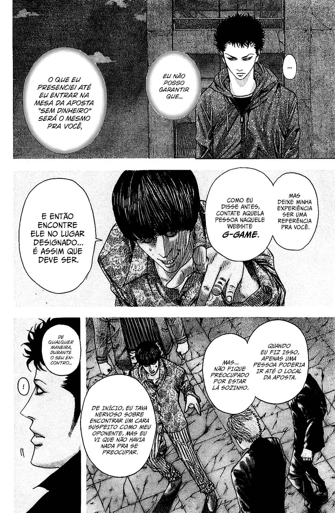 Capítulo 1 - JogadorCapítulo 1 - ApostasCapítulo 2 - Comendo agiotasCapítulo 3 - Armadilha de dados pessoaisCapítulo 3 - A Armadilha de Informações Pessoais Capítulo 4 - Assuntos SecretosCapítulo 5 - O valor das coisasCapítulo 5 - O valor das coisasCapítulo 6 - O jogo do edifício abandonadoCapítulo 6 - A Partida no Prédio AbandonadoCapítulo 7 - Tudo é uma apostaCapítulo 7 - Tudo é uma apostaCapítulo 8 - A Mente em ColapsoCapítulo 8 - Os espíritos se quebramCapítulo 9 - O Prazer de MatarCapítulo 10 - Uma festa de gritosCapítulo 11 - Um homem chamado UsoguiCapítulo 12 - DespertarCapítulo 13 - O terror da máscaraCapítulo 14 - Passando pelo prédioCapítulo 15 - Plano BCapítulo 16 - Implorando para viverCapítulo 17 - Limpe seu sangueCapítulo 18 - O golpe finalCapítulo 19 - Agarrando a vidaCapítulo 20 - Pega-pega no infernoCapítulo 21 - Quem sou eu?Capítulo 22 - Redenção!Capítulo 23 - Recuperando a força para um novo ataqueCapítulo 24 - Se preocupando com o dinheiroCapítulo 25 - Afiando as presasCapítulo 26 - Eu aposto!Capítulo 27 - Valores humanosCapítulo 28 - Conselho de uma mente exemplarCapítulo 29 - DevoreCapítulo 30 - Controle o dinheiro!Capítulo 31 - A fortuna é imprevisível e variávelCapítulo 32 - O prodígio KakerouCapítulo 33 - Intenção assassina brutalCapítulo 34 - O demônio enfurecido voltou!Capítulo 35 - O revolucionário apareceCapítulo 36 - Intuição femininaCapítulo 37 - A preciosa vida é...Capítulo 38 - O escolhidoCapítulo 39 - Algo está errado...Capítulo 40 - Proprietários do homemCapítulo 41 - HangmanCapítulo 42 - LeoCapítulo 43 - Primeiro jogoCapítulo 44 - Cinco de onzeCapítulo 45 - Batalha 50/50Capítulo 46 - A luta contra o tempoCapítulo 47 - EnfurecidoCapítulo 48 - Mate muitos para salvar poucos!Capítulo 49 - Em direção à vidaCapítulo 50 - Engrenagem corroídaCapítulo 51 - O brinquedo que está prestes a quebrarCapítulo 52 - O grande mentirosoCapítulo 53 - A festa continuaCapítulo 54 - Sorriso do deus da morteCapítulo 55 - O destino de um AlienCapítulo 56 - Zero, novamenteCapítulo 57 - O jeito do mundoCapítulo 58 - Leitura erradaCapítulo 59 - O derrotadoCapítulo 60 - Leão VS. LeãoCapítulo 61 - Sentimentos parentaisCapítulo 62 - Sensação da primeira vezCapítulo 63 - Destino do nadaCapítulo 64 - A verdade por detrás da revoluçãoCapítulo 65 - EnlouquecendoCapítulo 66 - SacrificandoCapítulo 67 - A chegada da sorteCapítulo 68 - Ambição secretaCapítulo 69 - Veja as condições para compensarCapítulo 70 - Pais e filhosCapítulo 71 - Meu valorCapítulo 72 - Verdadeira forçaCapítulo 73 - MensageiroCapítulo 74 - IdealCapítulo 75 - Termos do assassinoCapítulo 76 - O piedosoCapítulo 77 - Die YobboCapítulo 78 - Grupo ambiciosoCapítulo 79 - AlvoCapítulo 80 - Rumores EstranhosCapítulo 81 - Limite FatídicoCapítulo 82 - A estrada do desnorteamentoCapítulo 83 - DespertaresCapítulo 84 - Advento do rei demônioCapítulo 85 - Chances infinitasCapítulo 86 - Dentro de um sonhoCapítulo 87 - Cachorro confusoCapítulo 88 - A Composição do MundoCapítulo 89 - Entre no labirinto Capítulo 90 - O Nome da CompanhiaCapítulo 91 - O Melhor Lugar da CasaCapítulo 92 - Possessão DivinaCapítulo 93 - LembrarCapítulo 94 - O Terceiro HomemCapítulo 95 - AvisoCapítulo 96 - Aquilo que está perdidoCapítulo 97 - Uma Decisão é TomadaCapítulo 98 - A Ordem da FormigaCapítulo 99 - Contrato Para VidaCapítulo 100 - Um Grande ErroCapítulo 101 - Uma Ordem a Ser MantidaCapítulo 102 - O Ceifador DesceuCapítulo 103 - O Labirinto CorruptoCapítulo 104 - Propósito na VidaCapítulo 105 - FracassadoCapítulo 106 - O Demônio do Edifício Abandonado, De NovoCapítulo 107 - Algo que é ÓbvioCapítulo 108 - ChoqueCapítulo 109 - A Verdade do RumorCapítulo 110 - Festa das FerasCapítulo 111 - Battle RoyaleCapítulo 112 - Briga!!Capítulo 113 - Pandemõnio EternoCapítulo 114 - Próximo NívelCapítulo 115 - Arquivo-LCapítulo 116 - Seleção NaturalCapítulo 117 - A Vitória é InevitávelCapítulo 118 - O Melhor LabirintoCapítulo 119 - Monstro: MinotauroCapítulo 120 - Sondando um ao OutroCapítulo 121 - O Que Vem A SeguirCapítulo 122 - Uma Atmosfera InquietaCapítulo 123 - Uma Existência SelvagemCapítulo 124 - Entrando no Tempo M!Capítulo 125 - Uma Luta PuraCapítulo 126 - Pensamentos IntrincadosCapítulo 127 - Super-HumanoCapítulo 128 - Troca Pela VidaCapítulo 129 - Demônio vs Super HumanoCapítulo 130 - BlackCapítulo 131 - EngrenagemCapítulo 132 - ArmadilhaCapítulo 133 - Um Fracasso GravadoCapítulo 134 - Várias HistóriasCapítulo 135 - Encontrando o DesconhecidoCapítulo 136 - Características de Uma EliteCapítulo 137 - A Profundidade da PrevisãoCapítulo 138 - A Coisa EmprestadaCapítulo 139 - Cores MistasCapítulo 140 - O País Não Vai DesistirCapítulo 141 - O Homem Que Abandonou Seu OrgulhoCapítulo 142 - Coisas Perdidas Para a EscuridãoCapítulo 142.5 - Um Apostador Peculiar, UsokuiCapítulo 143 - MinotauroCapítulo 144 - Dois MonstrosCapítulo 145 - Extermine o MonstroCapítulo 146 - ComandoCapítulo 147 - Bem-vindo ao larCapítulo 148 - Ambos os homens se enfrentamCapítulo 149 - Uma Vingança Bem PlanejadaCapítulo 150 - A Qualificação da LutaCapítulo 151 - Aí vem o Nº 20!!
